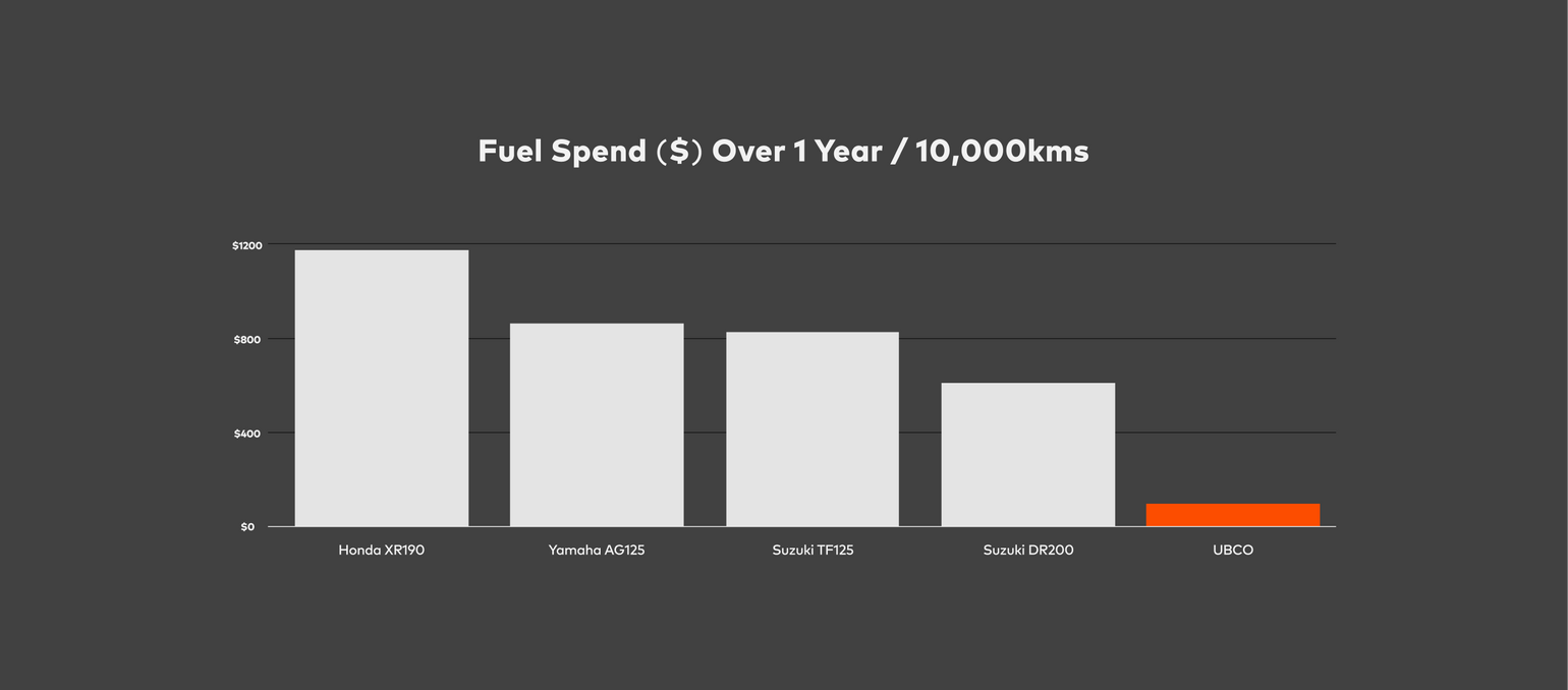 Up to 95% reduction in operational fuel costs* compared to the most common motorbikes used on New Zealand farms.
